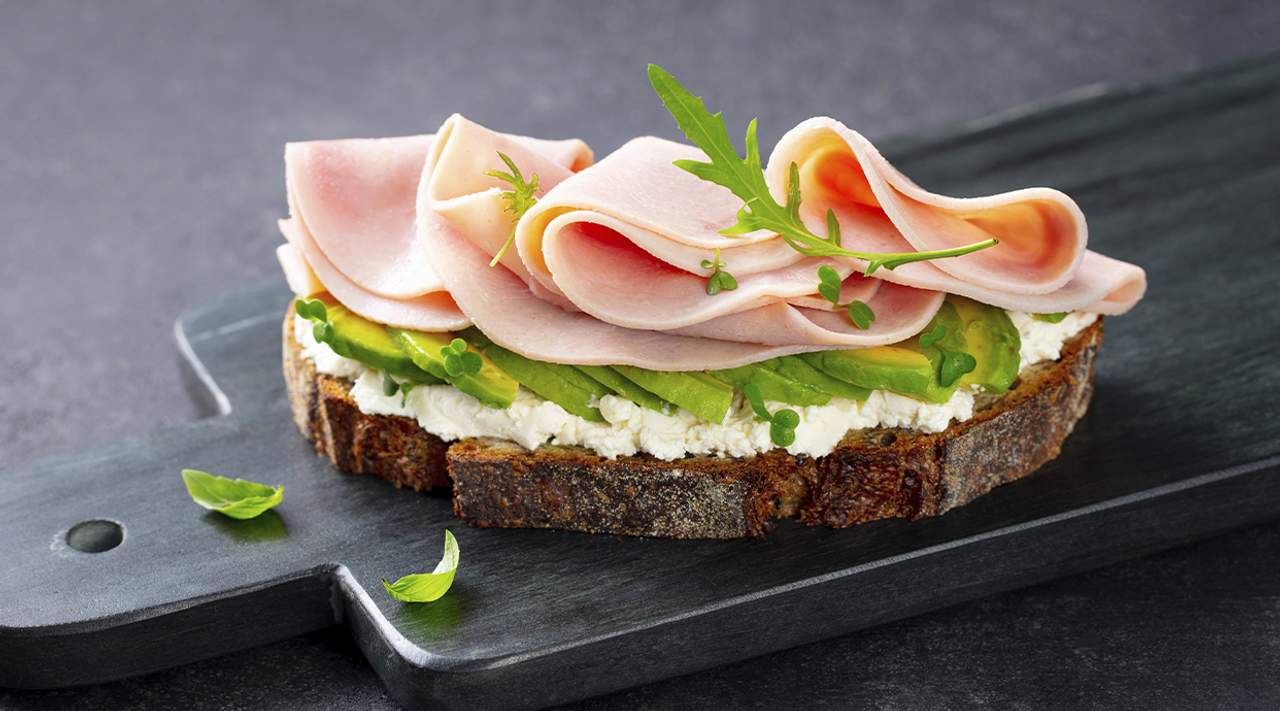 Tostada con aguacate y jamón de pavo