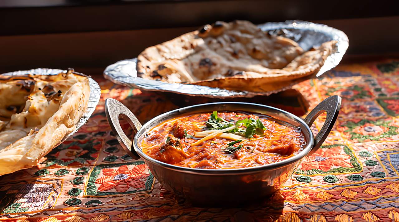 Bhuna con especies tradicional acompañada con cebolla tomate jengibre y ajo