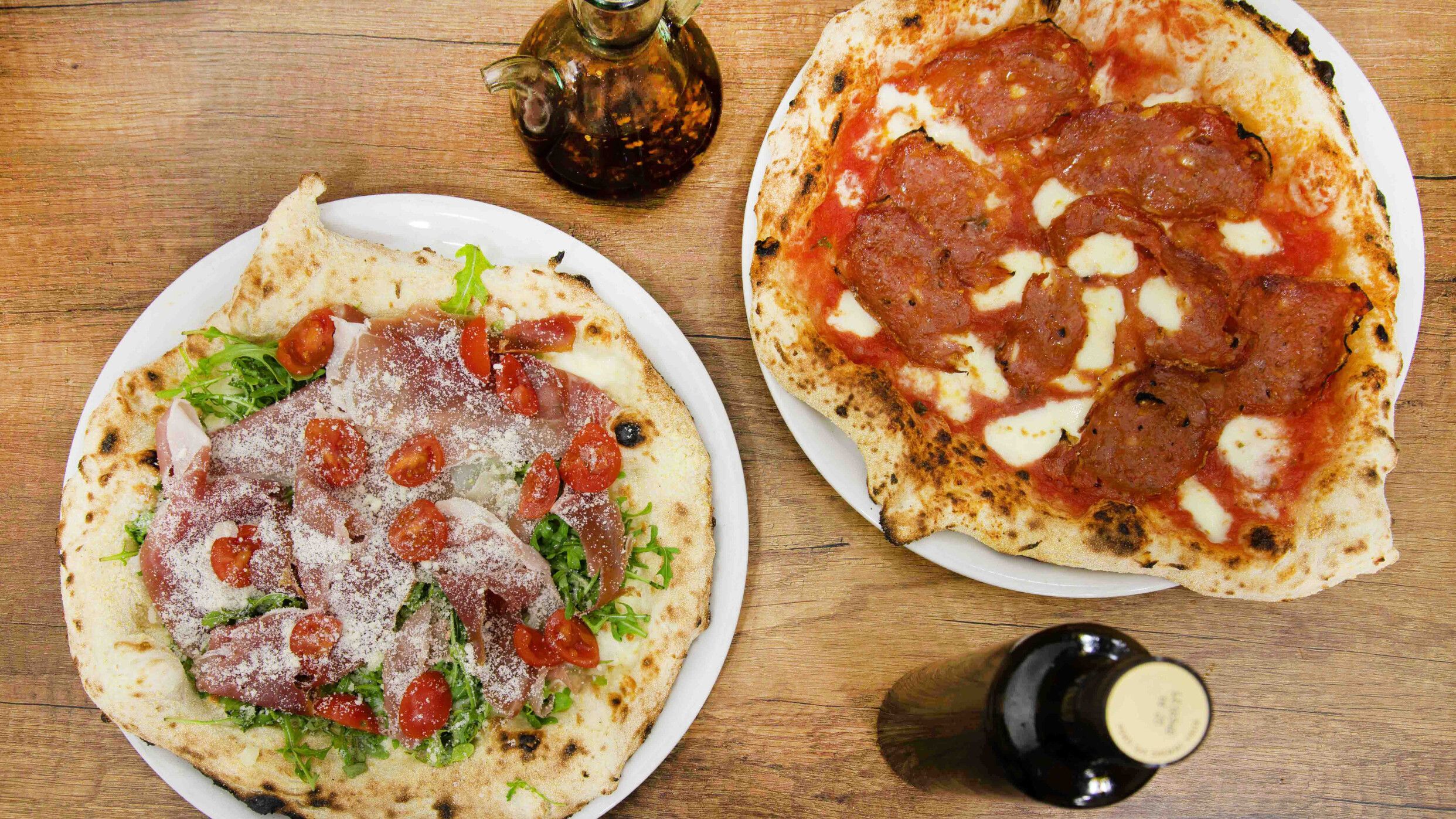 Mozzarella, tomate cherry, jamón de Parma, rúcula y Grana Padano D.O.P.