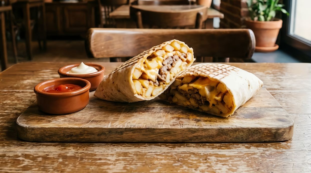 Carne de ternera, pollo o mixta con ensalada, salsa blanca y queso.