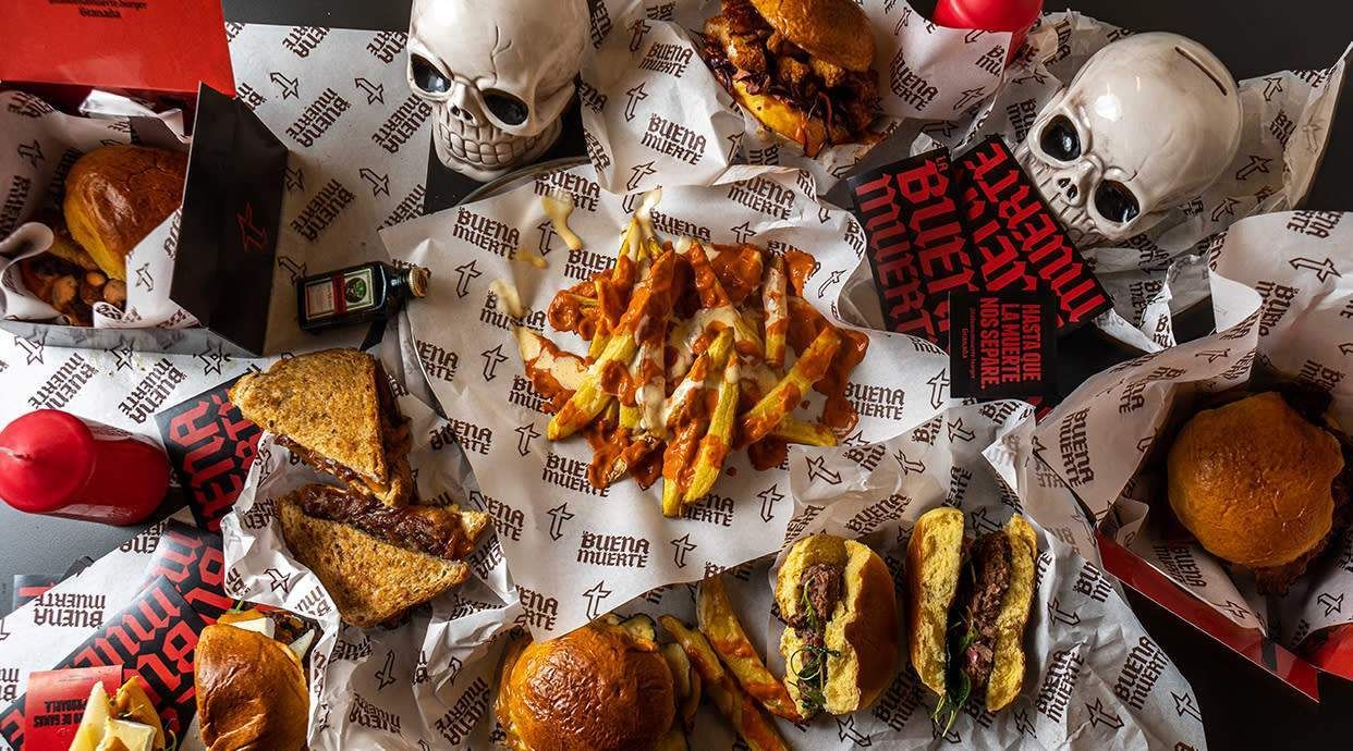 Smashburger, queso cheddar, pepinillos levantamuertos y nuestra salsa casera Buena Muerte. Alérgenos: gluten, huevo, sulfitos, pescado, apio y lácteos.