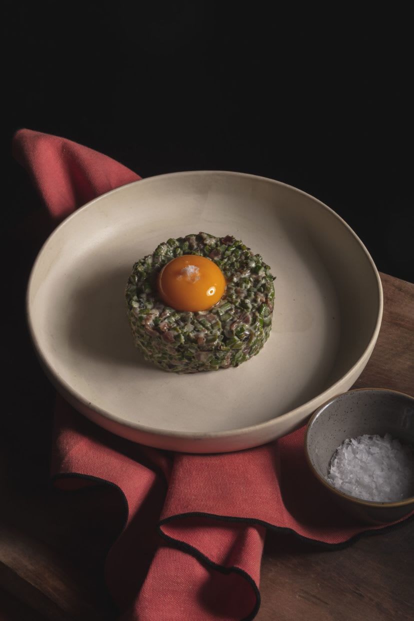 Tartar de descargamento y tarantelo de atún rojo salvaje de almadraba