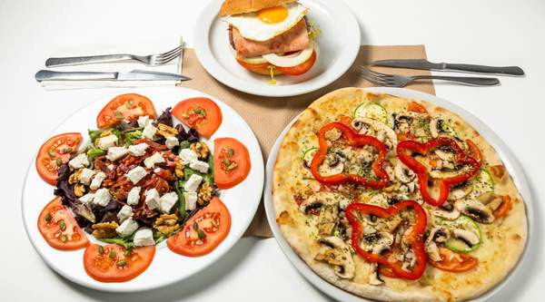 Pasta con salsa a elegir entre boloñesa (carne), al burro (mantequilla), carbonara, gambas, 4 quesos o frutos del mar (gambas, pescado blanco, calamar y mejillones).