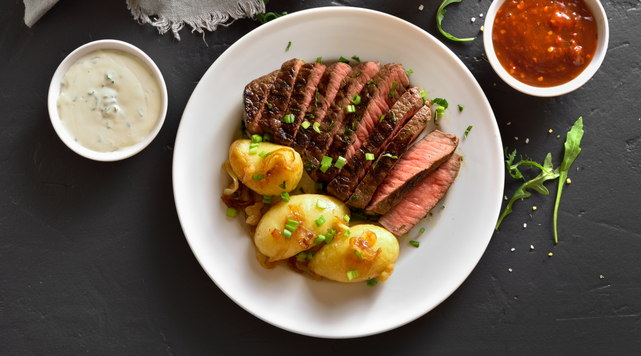 chuleta de novillo trinchado ( +-1000 gr., aconsejado para 2-3 personas ) acompañado d patatas fritas y verduras asadas