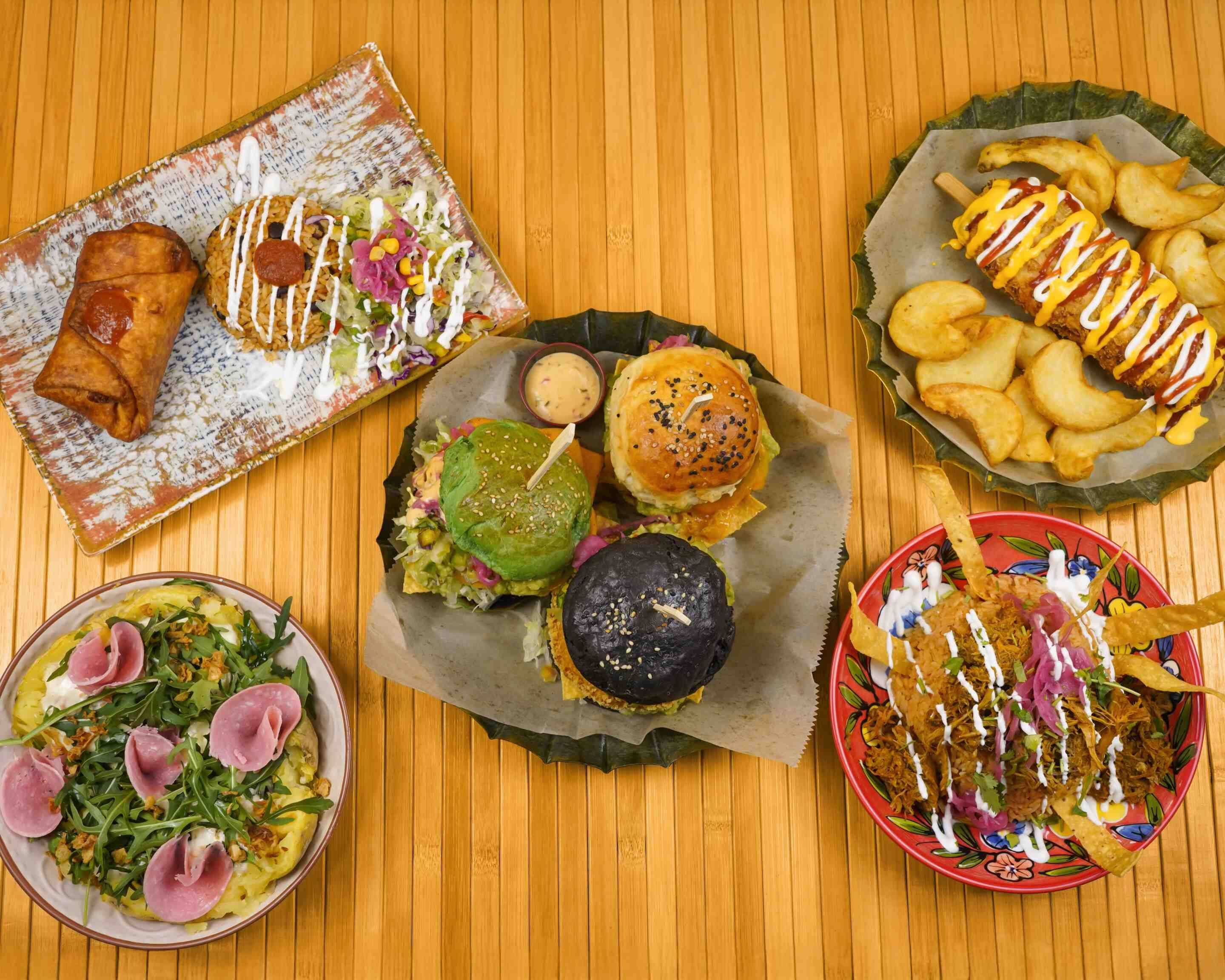 Tacos rellenos de queso, pollo, cochinita de pibil, carnitas, vegetariano o vegano y cebolla encurtida. Servido con arroz, frijoles y ensalada. Opción sin gluten o sin lactosa. *Alergenos: lácteos, contiene gluten.