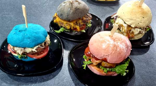 Sweet Dreams. Pan casero, carne de pollo rebozado, col morado a la plancha con salsa sweet chili(dulce-picante). Con queso gouda. (Pan Especial y Kerrito-azul con especias)