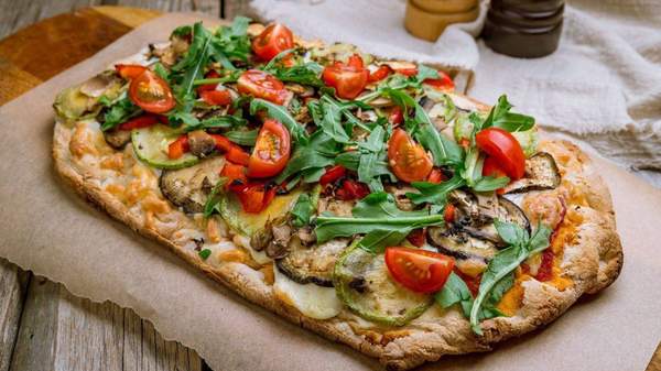 Tomate, mozzarella, calabacines, berenjenas y champiñones
