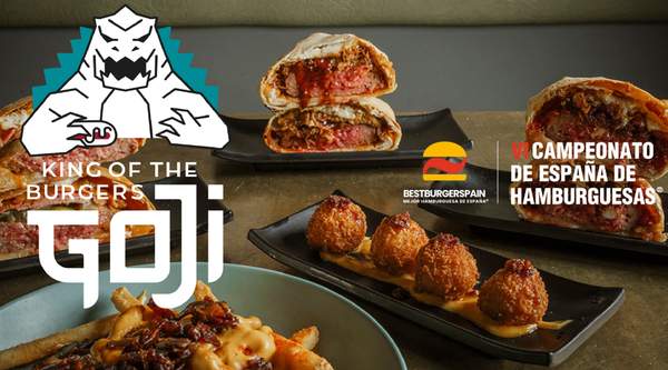 "El Goji más cazurro". Hamburguesas de chuleta de vaca , con queso curado de oveja "Abuelo Aitalas , crema de cecina de "Entrepeñas" y nuestro pimiento confitado
