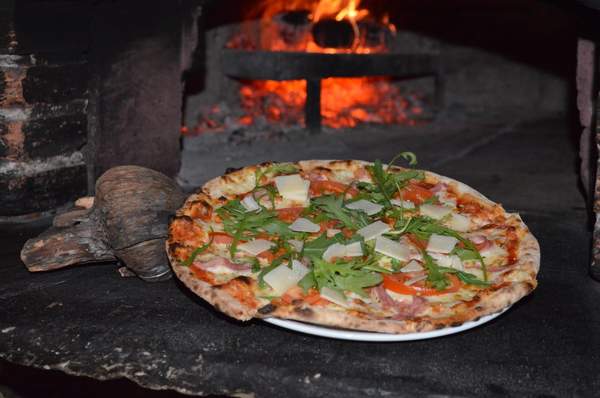 Escalopa con salsa napolitana y jamón gratinada al horno de leña