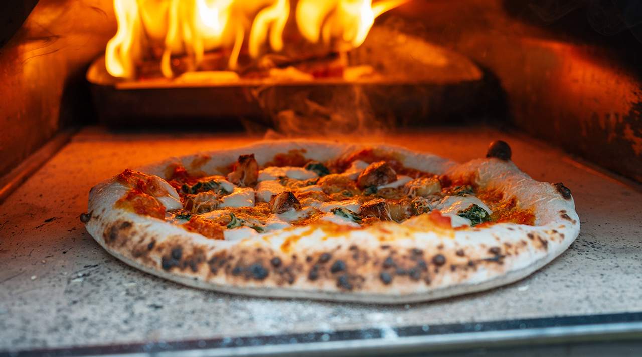 Tomate, queso mozzarella, queso burrata, mortadela, pistacho molido, pesto, queso parmesano rallado y orégano