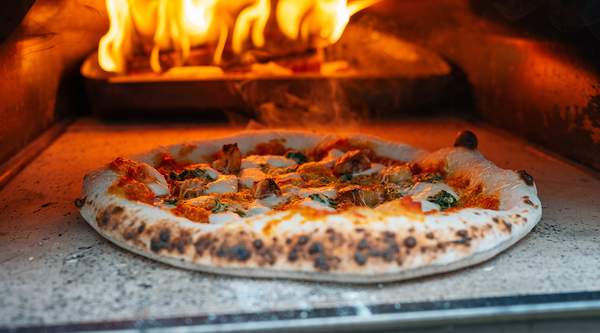 Tomate, queso mozzarella, jamón dulce, champiñones, alcachofa, olivas y orégano