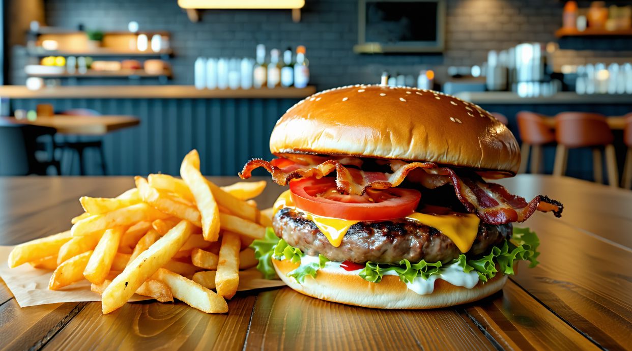 160 gramos de ternera, queso cheddar y bacon TODAS NUESTRAS HAMBURGUESAS TRAEN PATATAS. Bebida sugerida: Cualquier refresco.