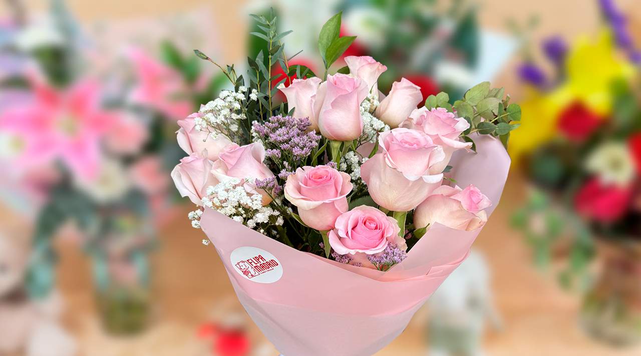 Mini Ramo Rosa roja, crisantemo, statice y clavel