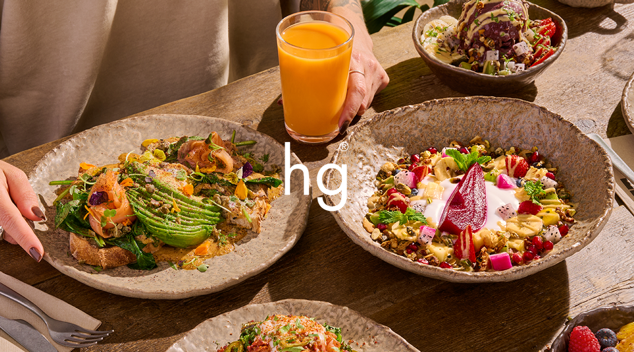 Huevos revueltos cremosos, aguacate, cebolla caramelizada, kale salteada, perejil, menta y cilantro, salsa holandesa olive oil–based y dukkah de avellana, sobre pan de masa madre artesanal.