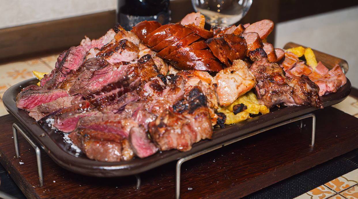 Increíble selección de 7 carnes a la parrilla acompañado de nuestras patatas fritas, “entrecot, lechazo, conejo, chorizo rojo, chorizo criollo, lacón y pollo”. Para compartir en varios