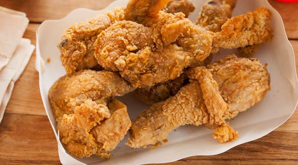 6 Trozos de pollo apanado, patatas fritas, ensalada tropical y refresco