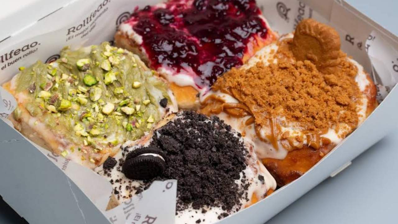 Nuestro clásico rol de canela cubierto con un extra de crema de galleta Lotus y trozos crujientes de la misma galleta