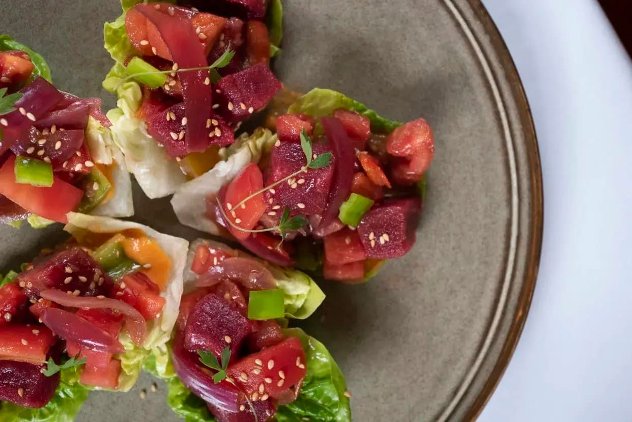 De berenjena y sus contrastes, acompañada de pan Carasatu