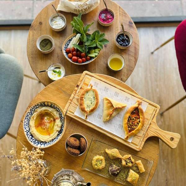Crujiente de garbanzos, cebolla, ajo, cilantro y comino, frito hasta dorarse, servido con pita y salsa tahini