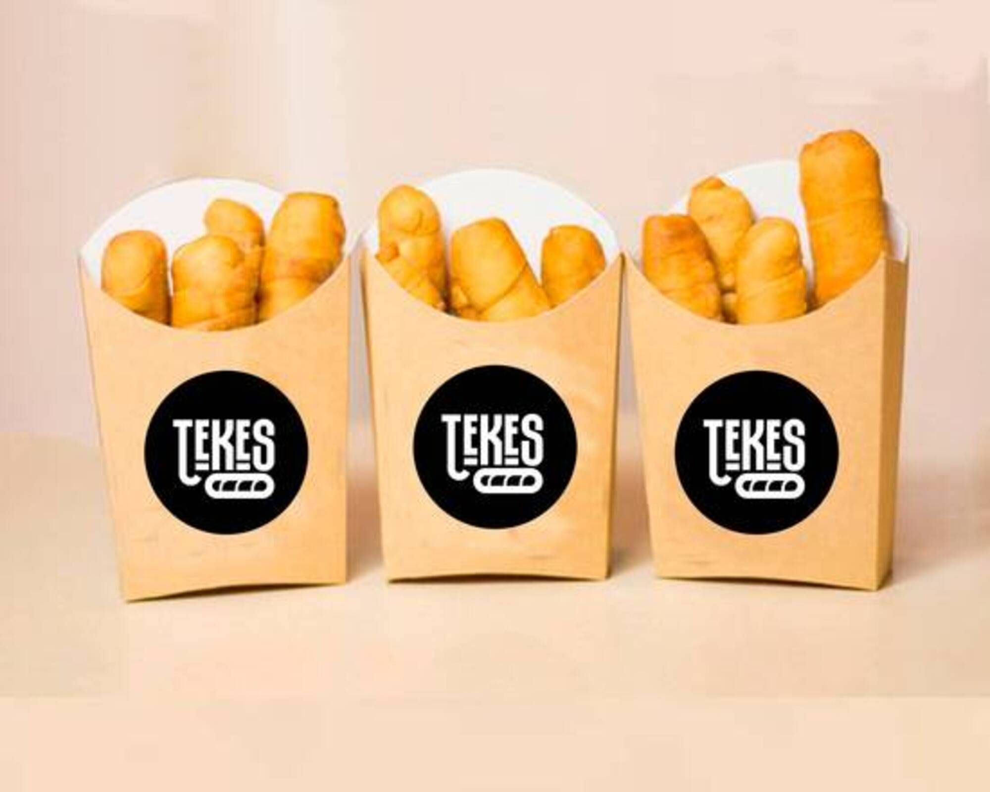 Tequeños de queso latino (2 uds.), tequeño de jamón y queso (2 uds.), tequeño de chistorra (2 uds.), tequeño de plátano y queso (2 uds.), tequeño de gouda (2 uds.) y tequeño de pizza (2 uds.)