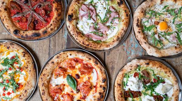 Tomate, mozzarella, 'nduja, olivas negras, salame picante, pecorino y albahaca