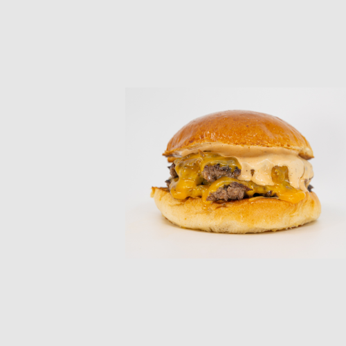 Doble burger de vacuno de 100gr, queso cheddar, salsa Lotus y galleta Lotus