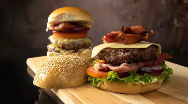 Rúcula, queso cheddar,bacon halal,cebolla caramelizada y miel mostaza
