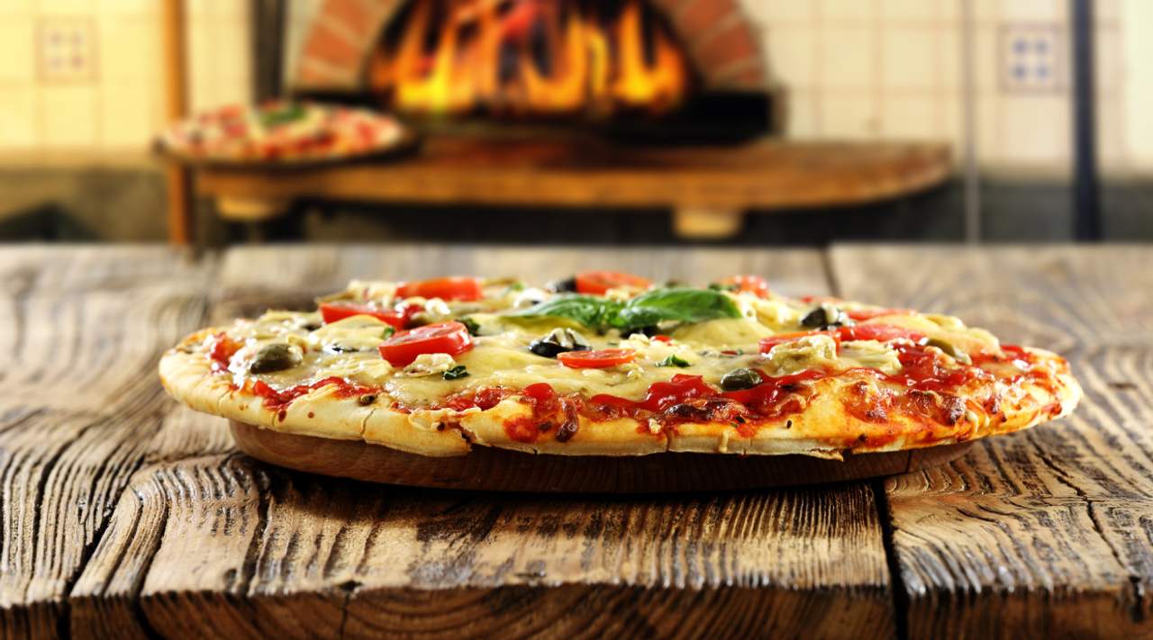 Tomate, queso, jamón, champiñones, espárragos, alcachofas y orégano