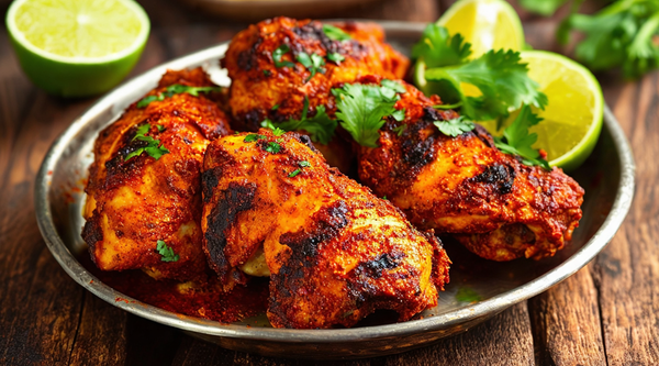 Marinado con ajo, jengibre, yogur, especias y cocinado el tandoor