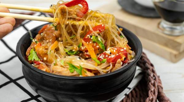 Es un poco picante, con ternera, pollo, gambas y cerdo