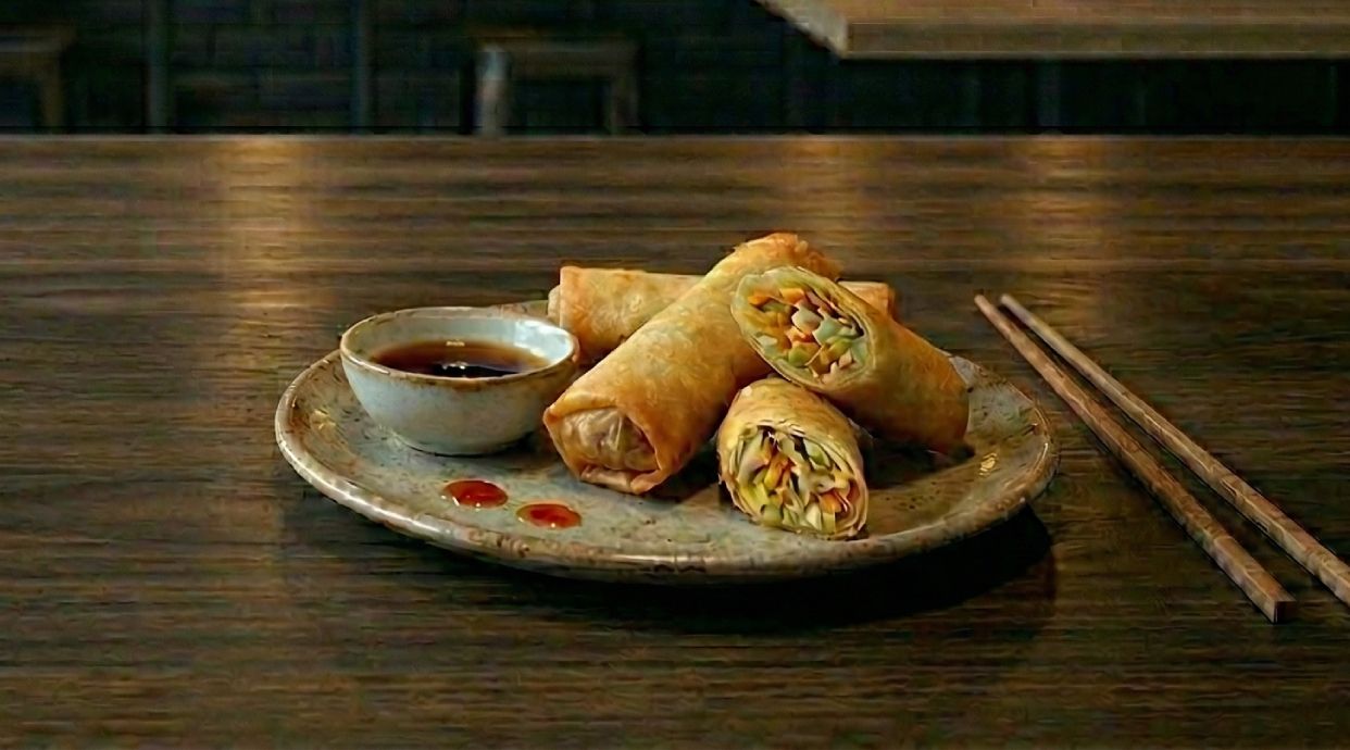 Rollitos rellenos de verduras, fritos hasta quedar crujientes.