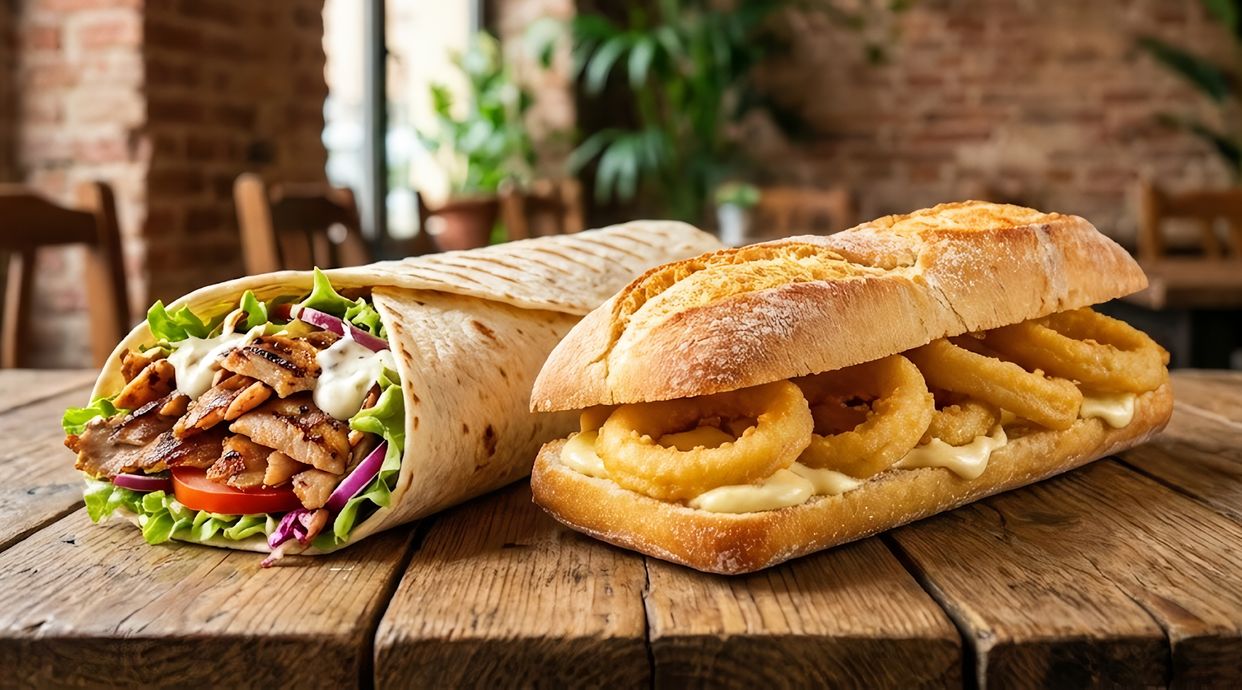 Kebab o dürum de pulpo, incluye bebida y patatas