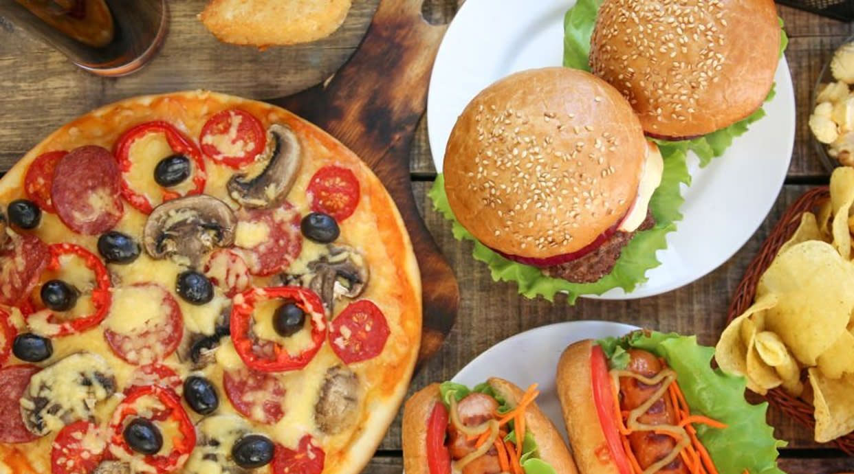 Salchichas, mini burger, huevo de codorniz, salsas anca