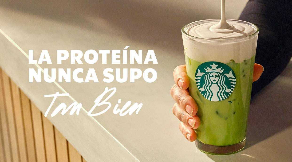 Iced Matcha finalizado con Cold Foam de Proteína sabor vainilla sin azúcar. Añade 15g de proteína por 100 kcal.