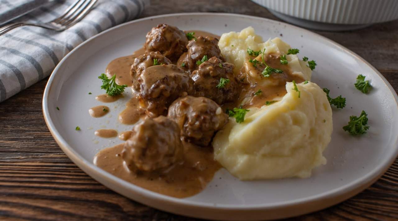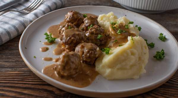 Nuestras albóndigas especies servidas con verduras y ensalada de remolacha roja casera