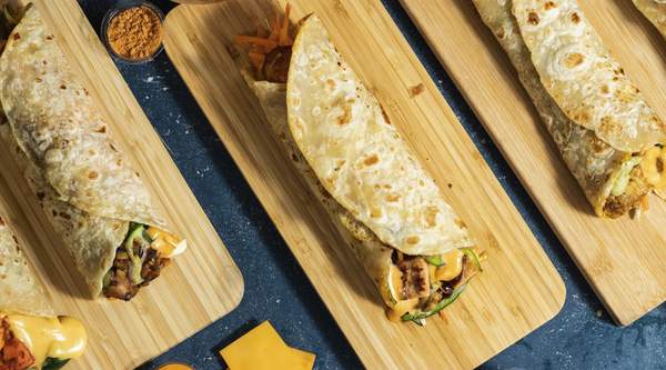 Tortilla, chips, nata, barbacoa, jamón y queso