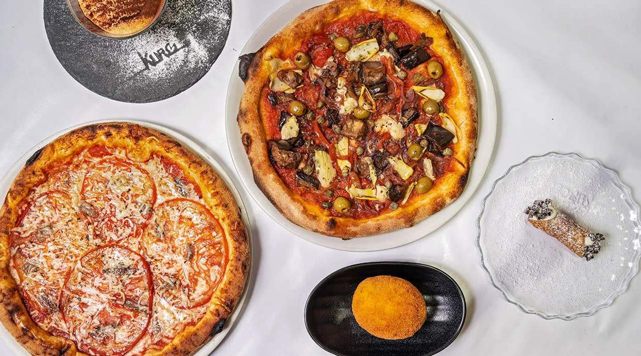 Mozzarella,bacon salteado con especias, mozzarella di bufala, cebolla caramelizada, salsa casera típica palermitana, queso en polvo, pan rallado ,crema de pistacho casera y capuliato di tomate seco.