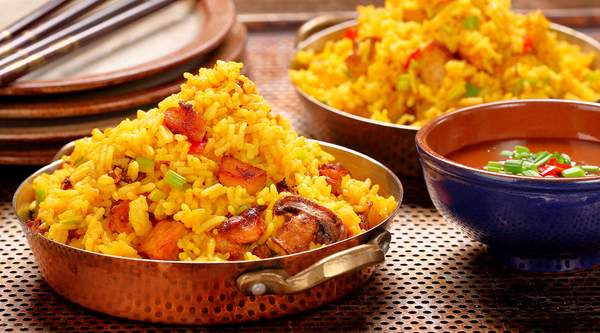 Arroz con pollo aromatizado con azafrán