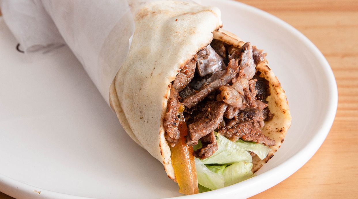 Pan pita suave, relleno de carne sazonada, queso y vegetales