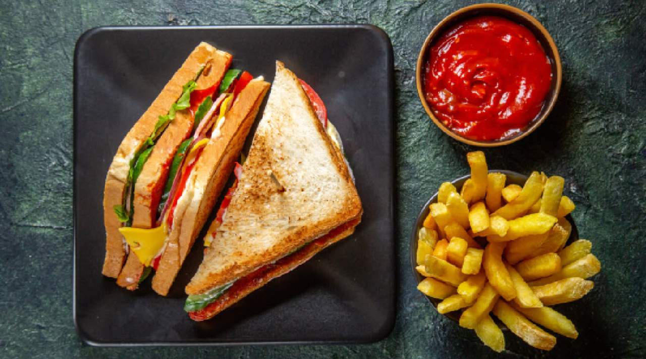 Sándwich lomo adobado,pollo o carne mechada, huevo, bacon, ensalada, queso y salsa.