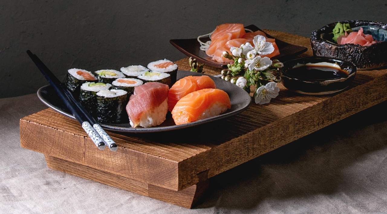 Plato típico de Japón, salmón cortado de manera fina que se combina con salsa de soja y degustar por si mismo / A typical Japanese dish, thinly sliced salmon is combined with soy sauce and enjoyed on its own