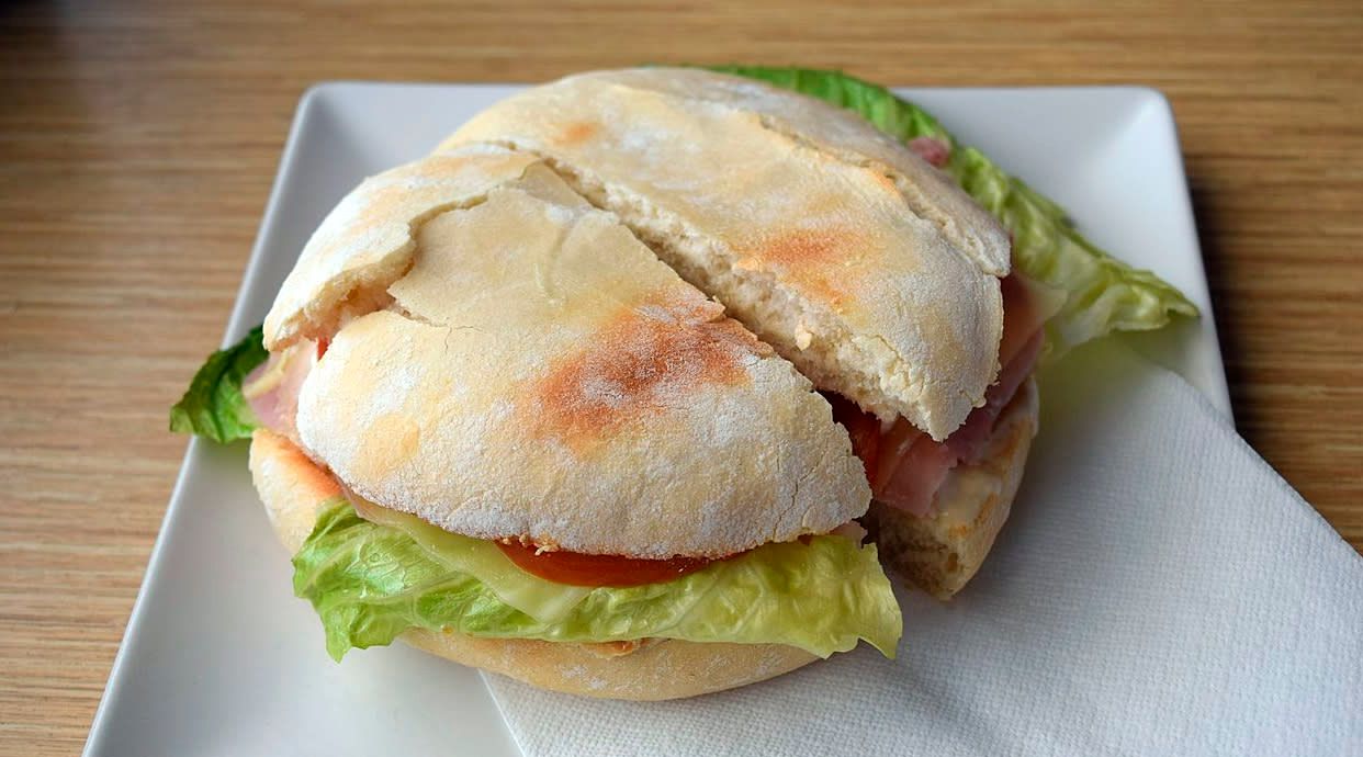 Mayonesa, lechuga, tomate, jamón, queso y cebolla