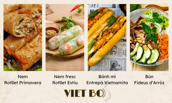 Pan vietnamita ligero con tortilla, paté de cerdo, embutido vietnamita, pepino fresco, zanahoria, cilantro, salsa casera especial de Viet Bo