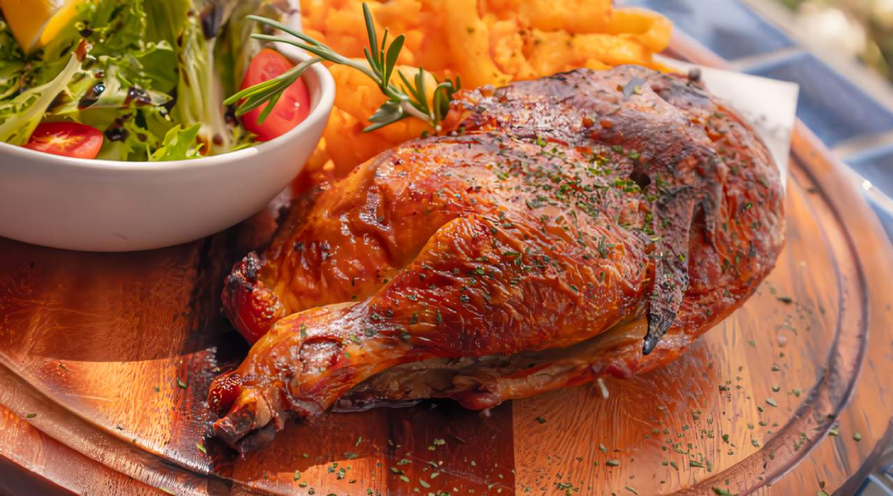 Medio pollo a la parrilla, 1 acompañamiento y 1 bebida
