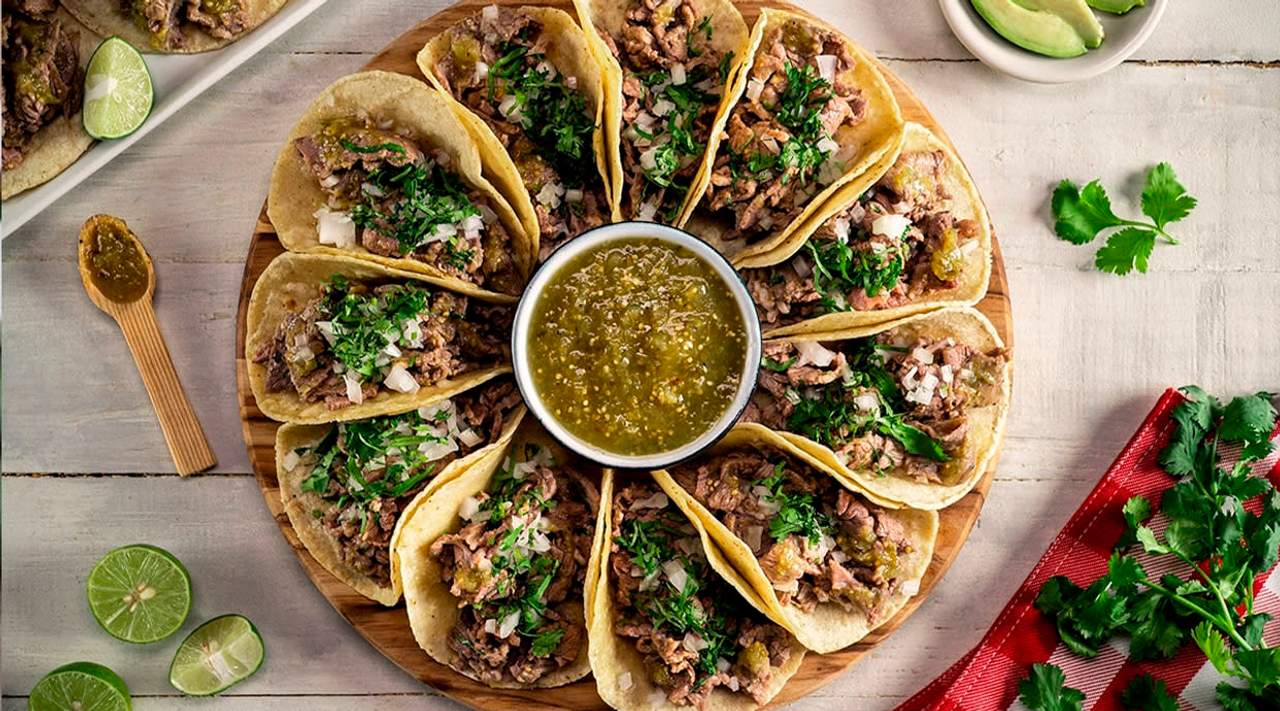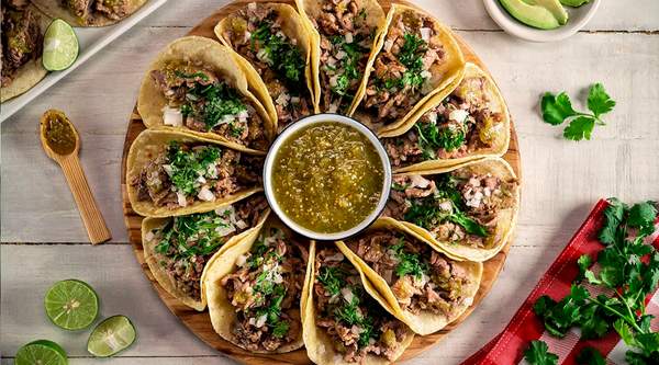 Elige 6 tacos, 1 quesadilla, 1 complemento, 1 nachos y 2 bebidas