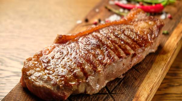 Solomillo de ternera tierno preparado en whisky, acompañado de ensalada y patatas fritas