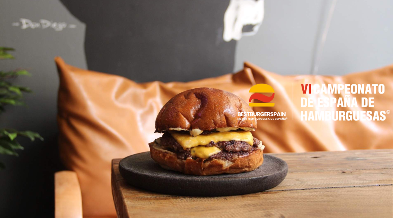 Burger Doble carne smash, Queso Americano, Jamón Ibérico, Ruffles de jamón, Salsa Mayotrufa + Papas de la casa