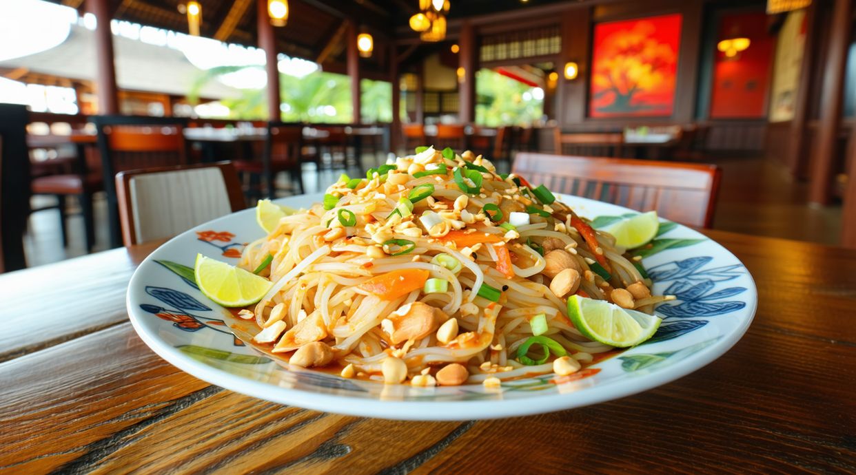 Láminas de arroz salteadas a fuego alto con huevo, zanahorias y judías. El toque final lo da la salsa tailandesa, que carameliza los bordes de la pasta, creando una experiencia crujiente por fuera y tierna por dentro.