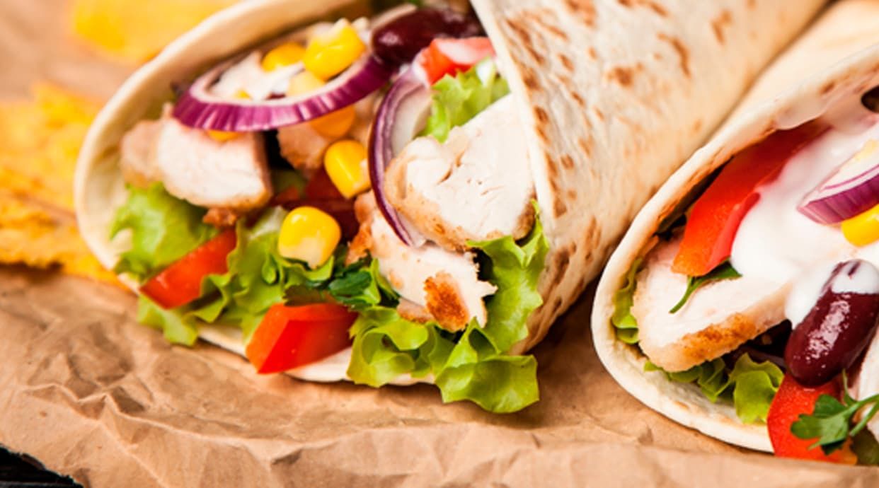 Pechuga de pollo cortada a dados con nuestra selección de quesos fundidos, verduras y bacón, servidos con tortillas de trigo
