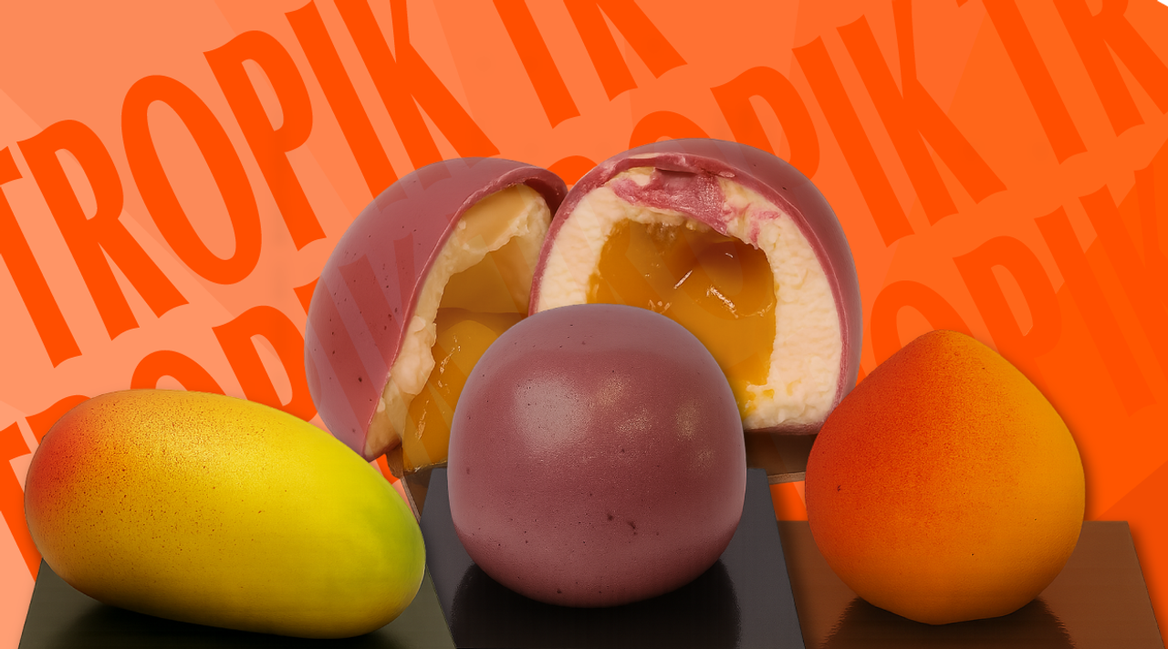Explosión tropical de maracuyá: mousse ligera con un interior vibrante y ácido-dulce. Intenso y absolutamente irresistible.